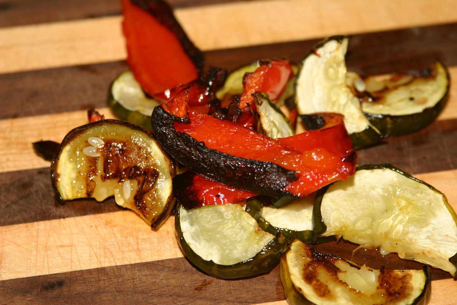 It didn't take long for the veggies to be done in a really hot oven. Don't you just love the look of roasted veggies?